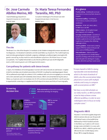 Albillos Merino, MD Taranilla, MD, PhD Practice setting – Multidisciplinary breast